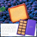 北海道特産品の果実「ハスカップ」ジャムとバタークリームをクッキーでサンドにさらに周囲をチョコレートで縁取りしている。
